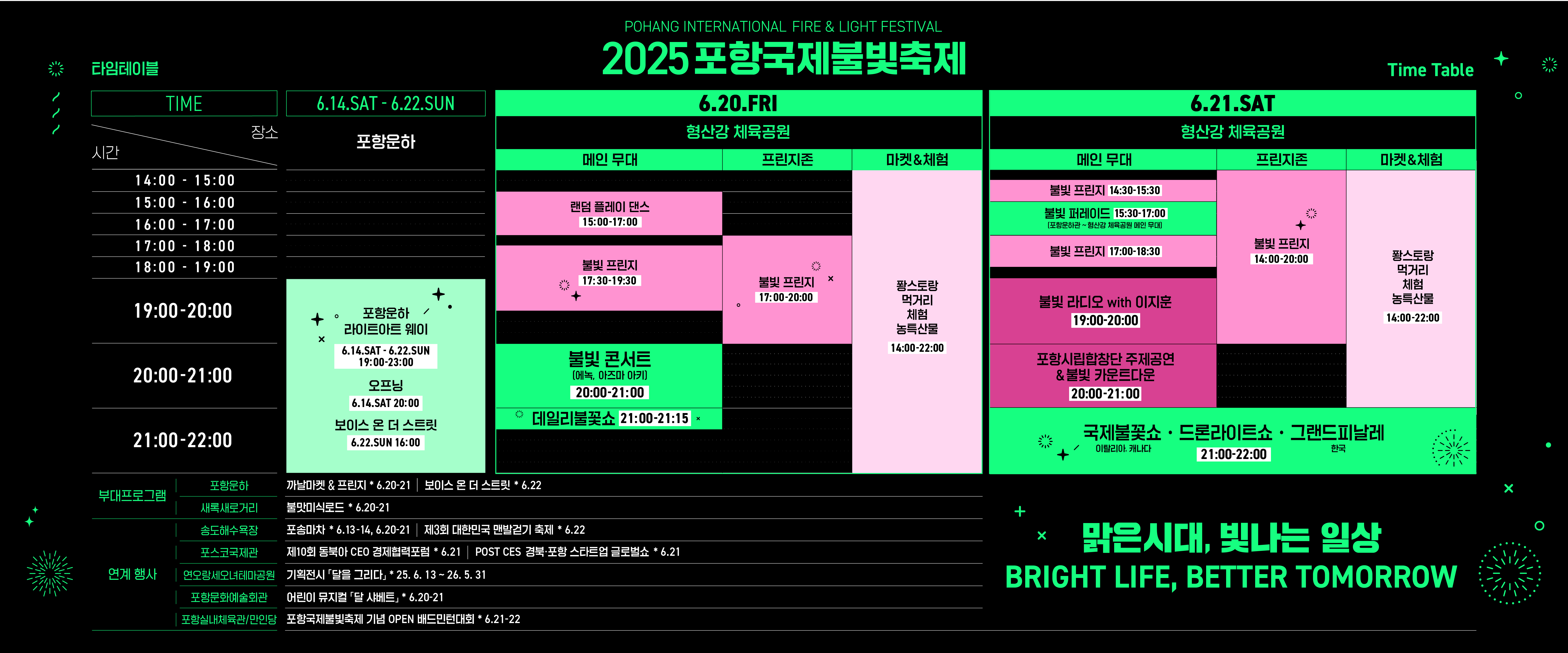 | 6월 21일(토) | 국제불꽃쇼, 드론라이트쇼, 그랜드피날레 | 형산강 체육공원 |